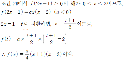 ㈎ “$f(2x-1) \geq 0$의 해는 $f(2x-1) \geq 0$”라는 조건에서 $f(x)$의 식을 결정하지 못함.