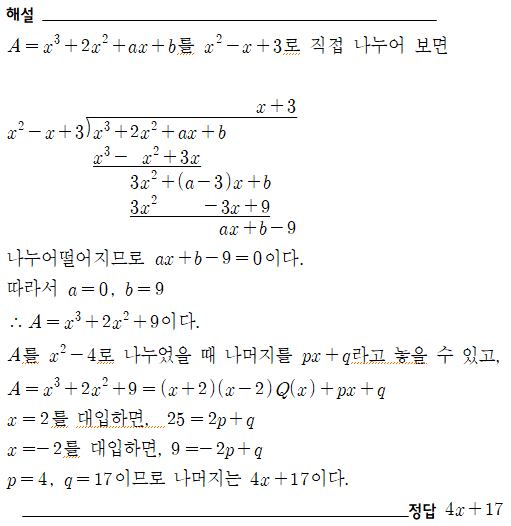 | [공통수학1] 2024 옥정고1_ 6번 [나머지정리] (0) | 2025.04.19 |
