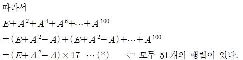 $ A= \begin{pmatrix} -4 & -3 \\ \ 7 & \ \ 5 \\ \end{pmatrix}$일 때, $E+ A^{2} + A^{4} + A^{6} + \cdots + A^{100}$을 간단히 하면?