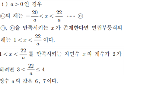 $x$에 대한 연립부등식 $ \begin {cases} \vert ax-1 \vert < 21 \\ 2x+3>5 \end {cases}$를 만족시키는 자연수 $x$의 개수가 $2$일 때, 모든 정수 $a$의 값의 합은? [4점]