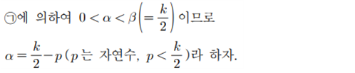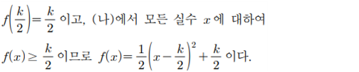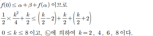 실수 $k$와 최고차항의 계수가 $ \frac{1}{2}$인 이차함수 $f(x)$에 대하여 $x$에 대한 방정식 $f(x)+x=k$가 서로 다른 두 자연수 $\alpha$, $\beta$를 근으로 가질 때, 함수 $f(x)$는 다음 조건을 만족시킨다.