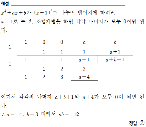 | [공통수학1] 2024 의정부여고1_ 11번 [인수정리와 다항식의 결정] (0) | 2025.04.21 |