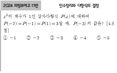 | [공통수학1] 2024 청학고1_ 6번 [인수정리와 다항식의 결정] (0) | 2025.04.21 |