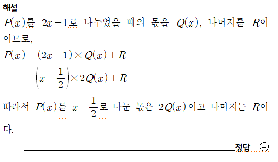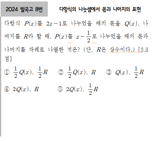 | [공통수학1] 2024 옥정고1_ 15번 [다항식의 나눗셈에서 몫과 나머지의 표현] (0) | 2025.04.18 |