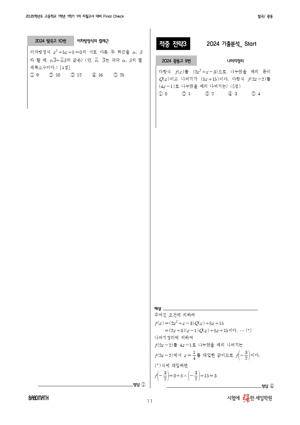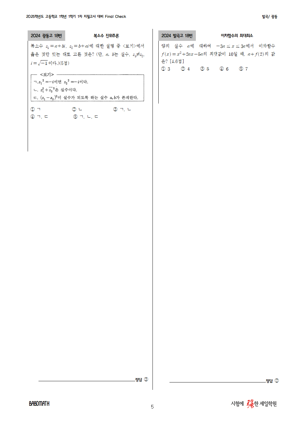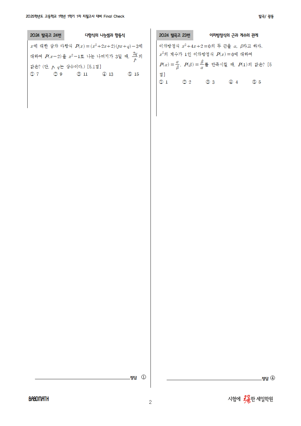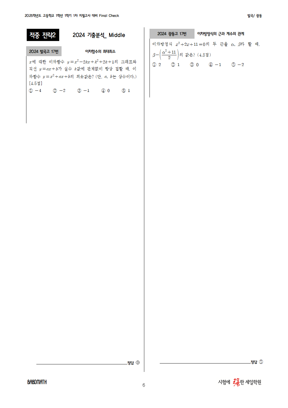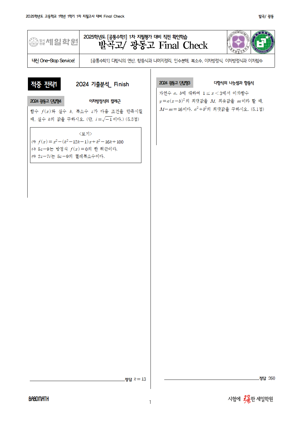 Final Check/[1학년 1학기 지필평가] Final Check 2025학년도 광동고 발곡고 1학년 1학기 1차 지필평가 대비 Final Check by BABOMATH 2025. 4. 28. 2025_발곡,광동1_1학기중간_FinalCheck.pdf 0.22MB 반응형 LIST 공유하기 게시글 관리 바보수학자