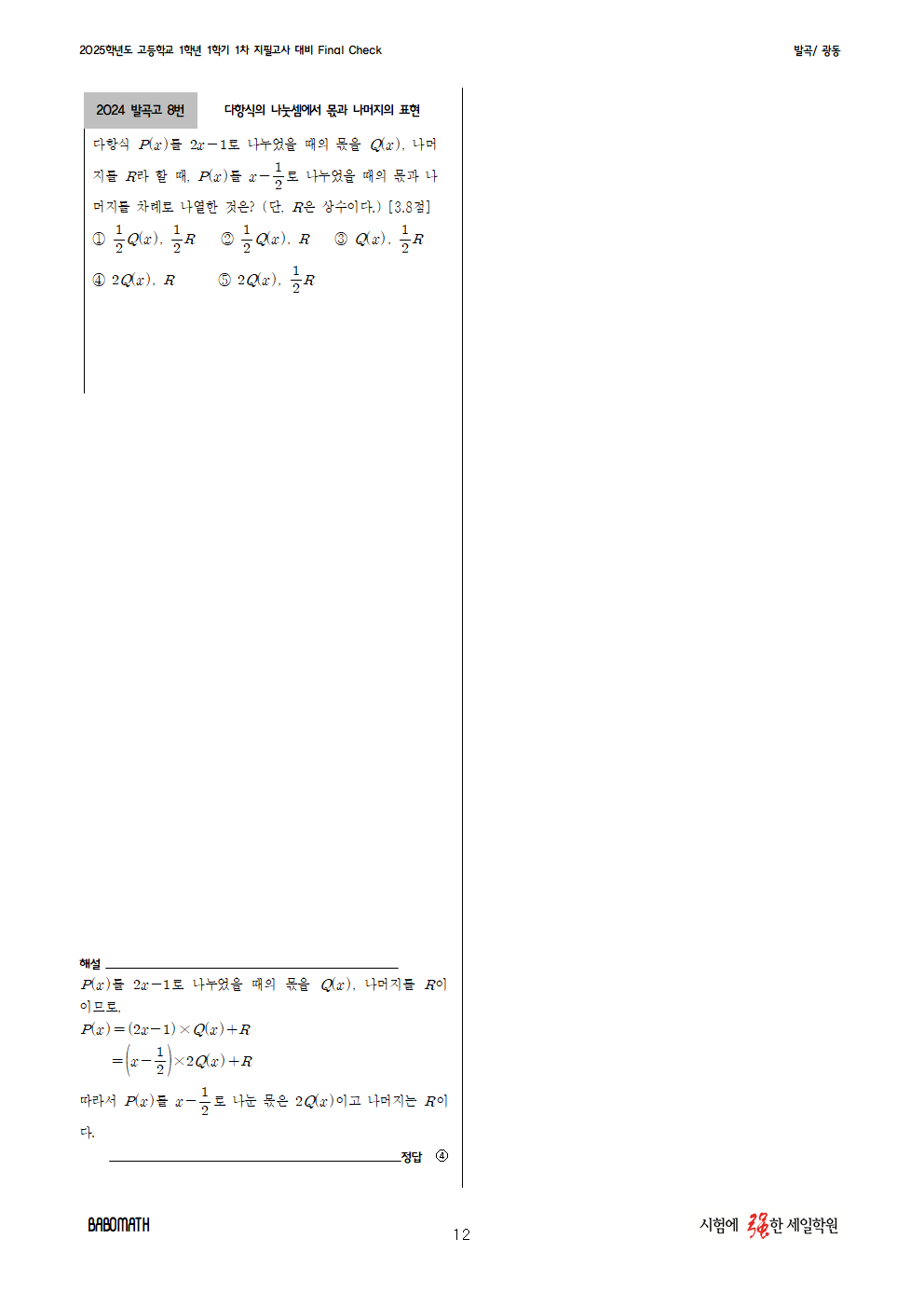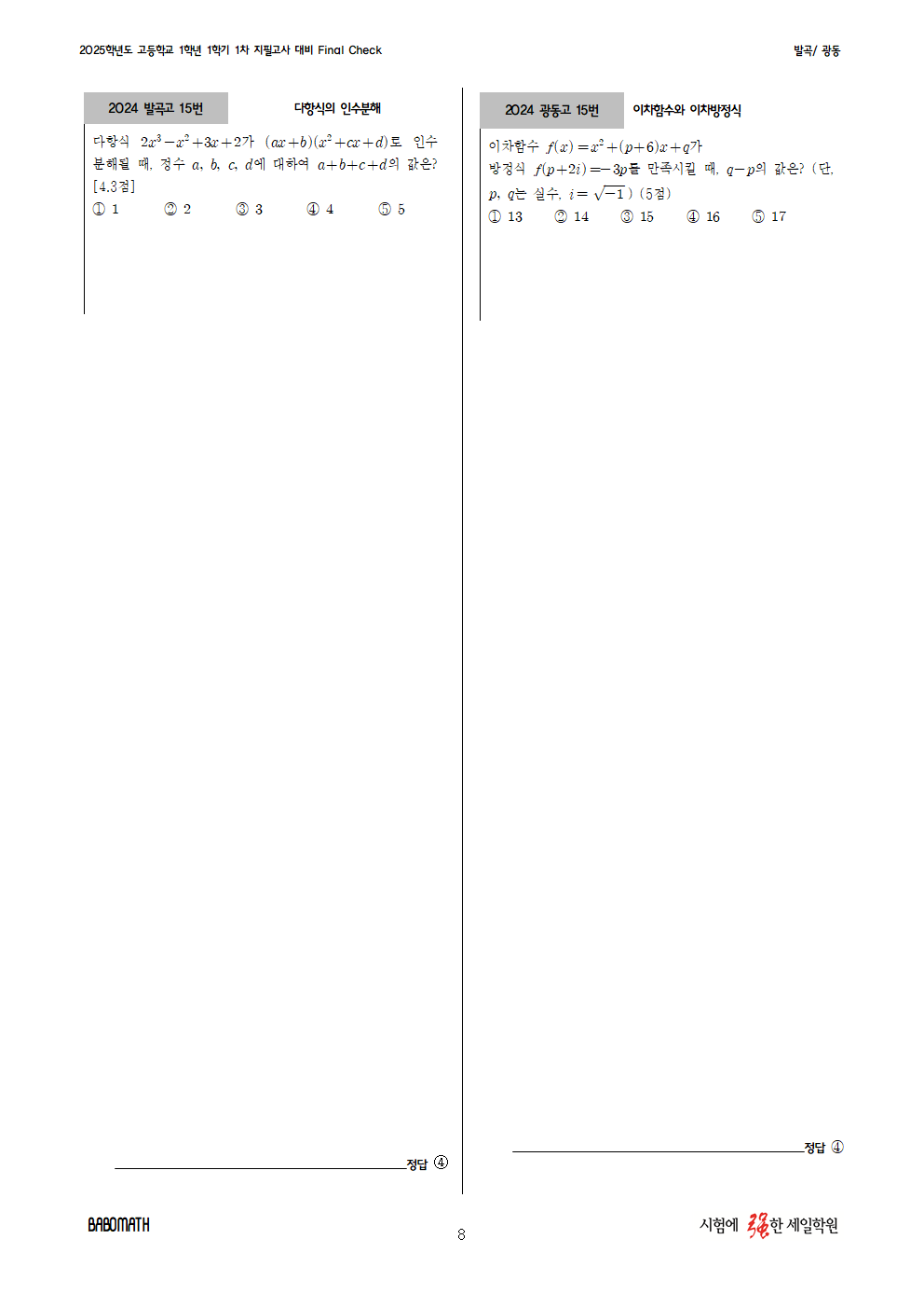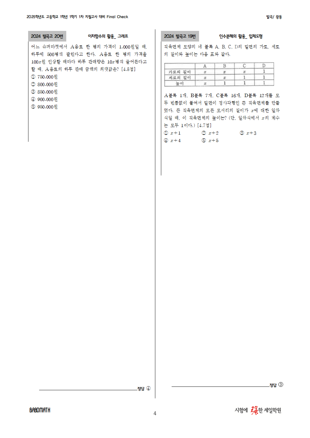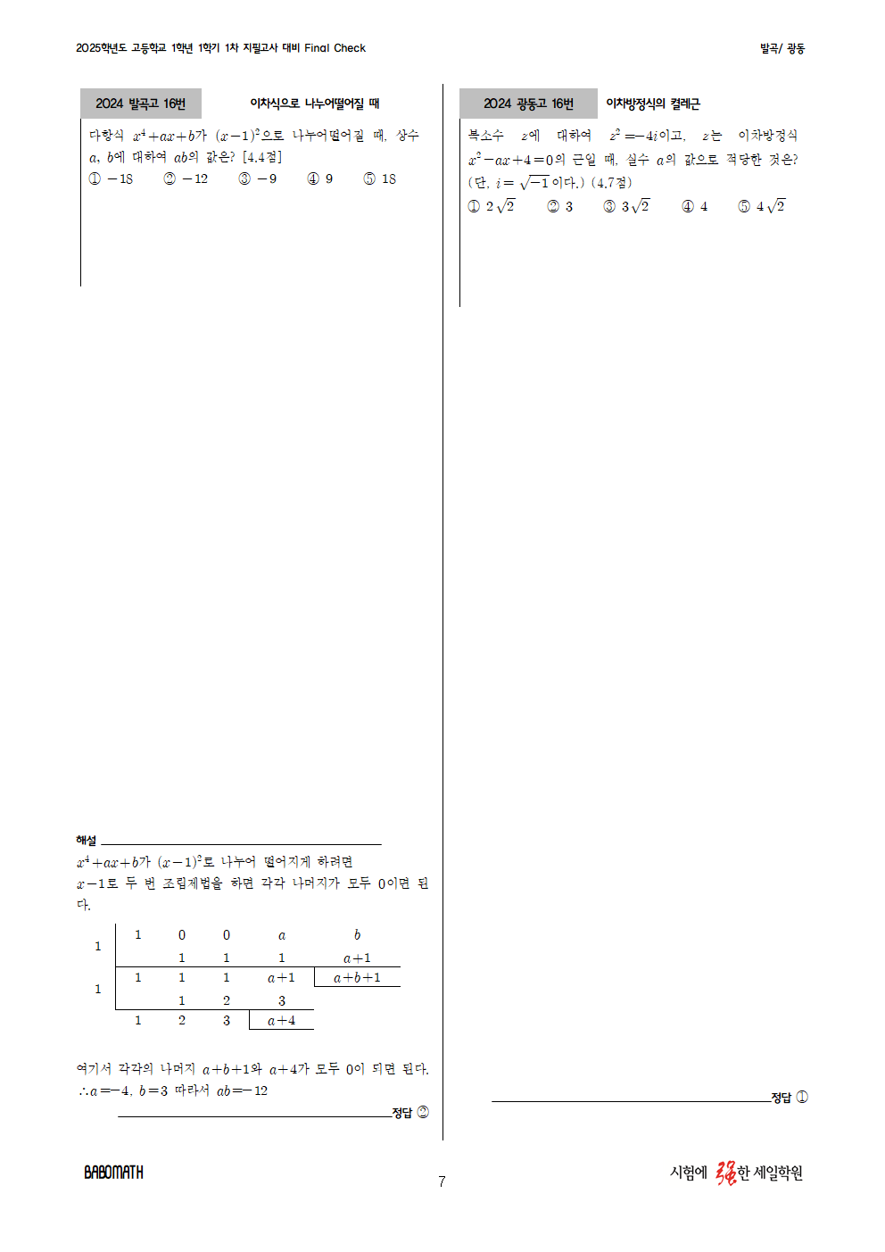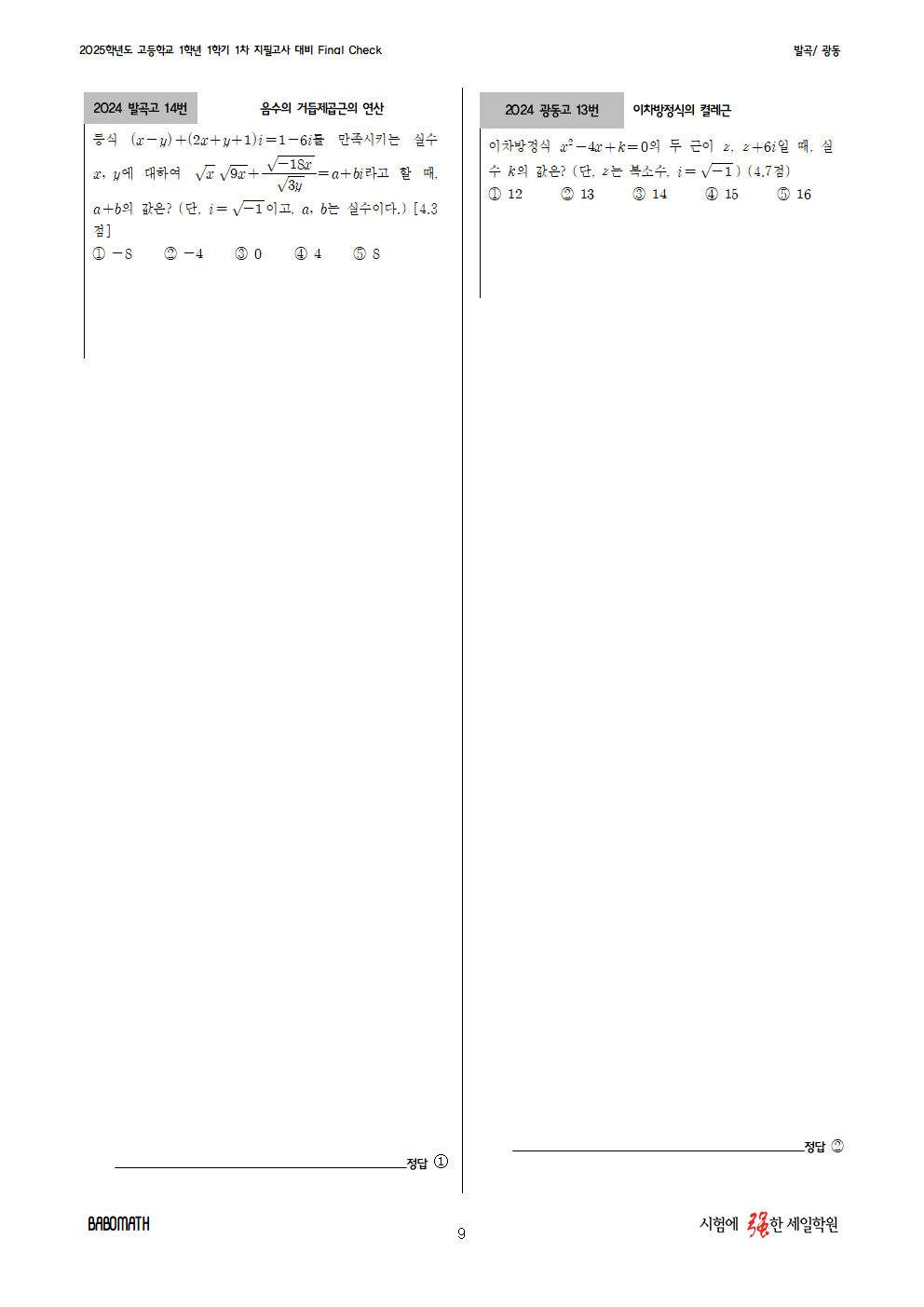 Final Check/[1학년 1학기 지필평가] Final Check 2025학년도 광동고 발곡고 1학년 1학기 1차 지필평가 대비 Final Check by BABOMATH 2025. 4. 28. 2025_발곡,광동1_1학기중간_FinalCheck.pdf 0.22MB 반응형 LIST 공유하기 게시글 관리 바보수학자