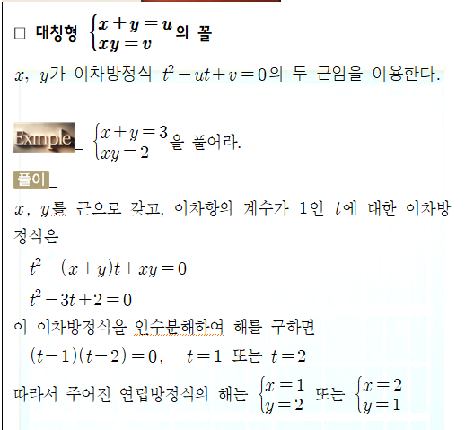 □■대칭형의 연립이차방정식 학교시험 문제 풀기