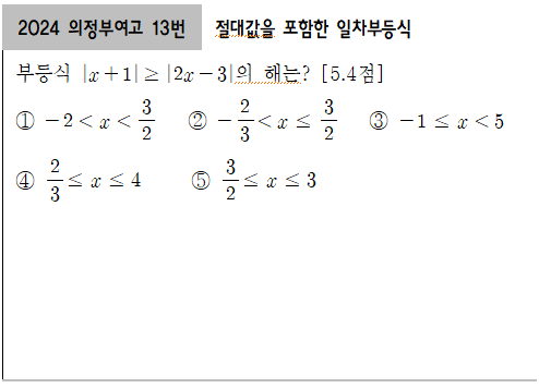 [2024 덕현고1] 1학기 2차 지필평가 11번_ 절대값을 포함한 일차부등식 (0) | 2025.05.13 |