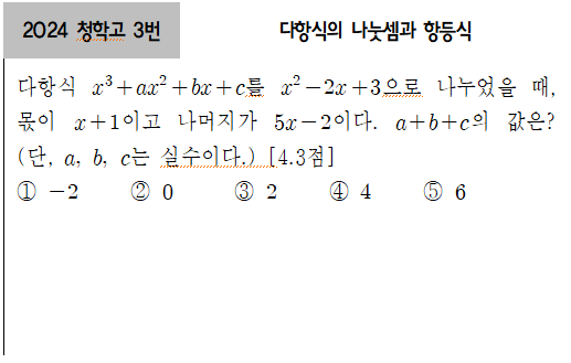 | [공통수학1] 2024 청학고1_ 4번 [항등식의 풀이] (0) | 2025.04.19 |