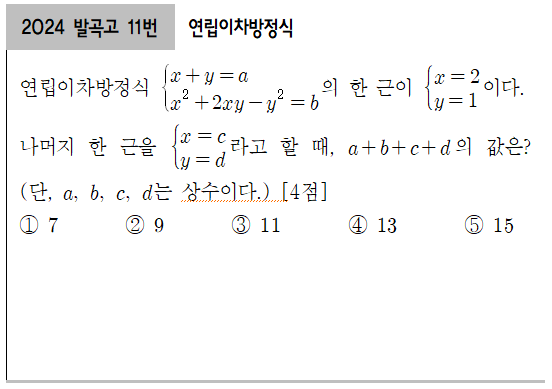 | [2024 광동고1] 1학년 1학기 2차 지필평가 14번_ 사차방정식의 근을 알 때 (0) | 2025.05.23 |