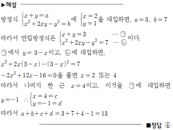 [공통수학1] 여러가지 방정식_ 연립이차방정식의 풀이
