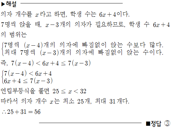 [공통수학1] 여러 가지 부등식_ 연립일차부등식의 활용(과부족)