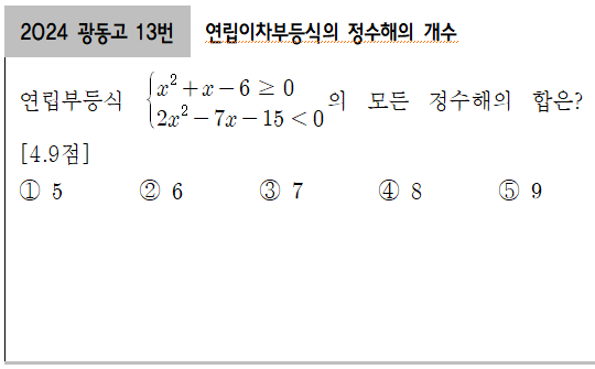 [2024 송양고1] 1학기 2차 지필평가 13번_ 연립이차부등식의 정수해 (0) | 2025.05.20 |