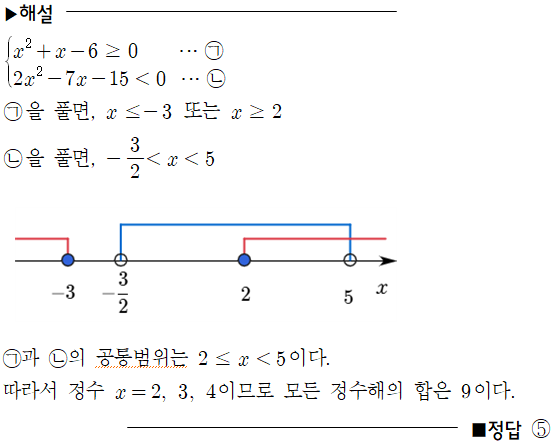 [공통수학1] 여러 가지 부등식_ 연립이차부등식의 정수해